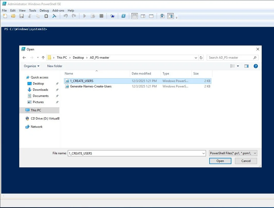 https://github.com/joshmadakor1/AD_PS/blob/master/1_CREATE_USERS.ps1Then extract the zip file. Make sure the file is extracted on the desktop.