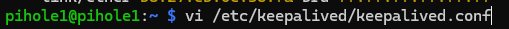 After that we want to create a configuration file for keepalived on the directory /etc/keepalived/keepalived.conf. We will have to do that for both our instances (Pihole1 and Pihole2).