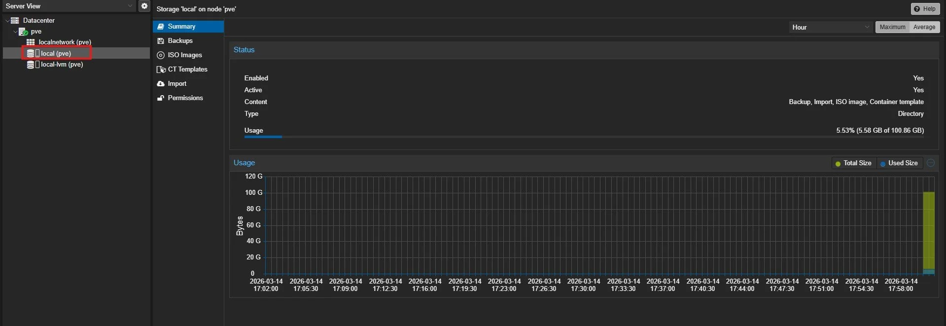 The next thing is to go to proxmox and click on local (pve), where you can upload your iso files.