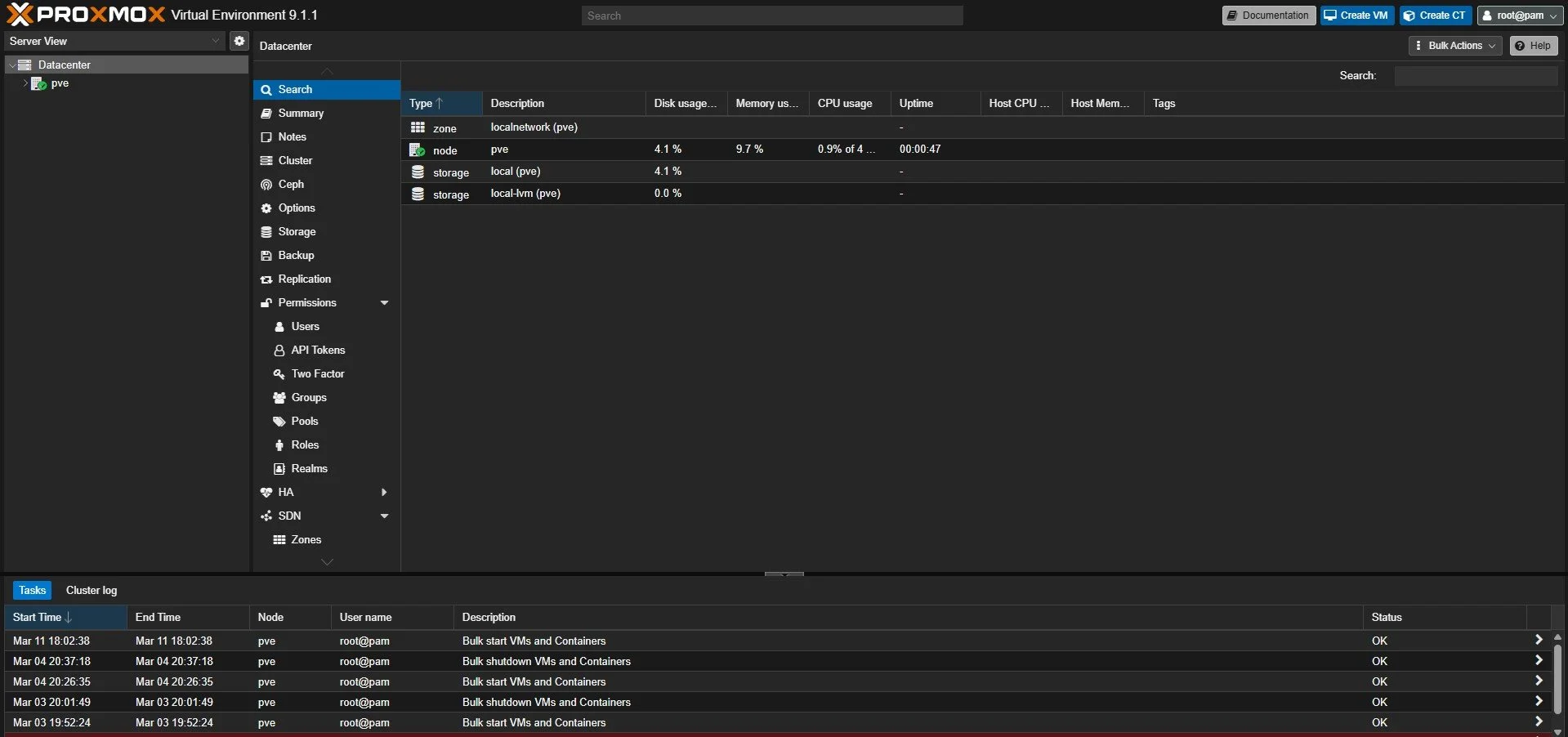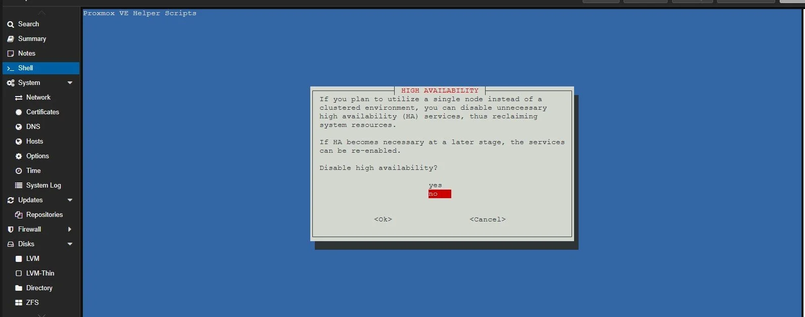 In this setup I chose not to get high availability since I only have one machine with proxmox in place but, in the future if I ever need it, it should be easy to enable it again.