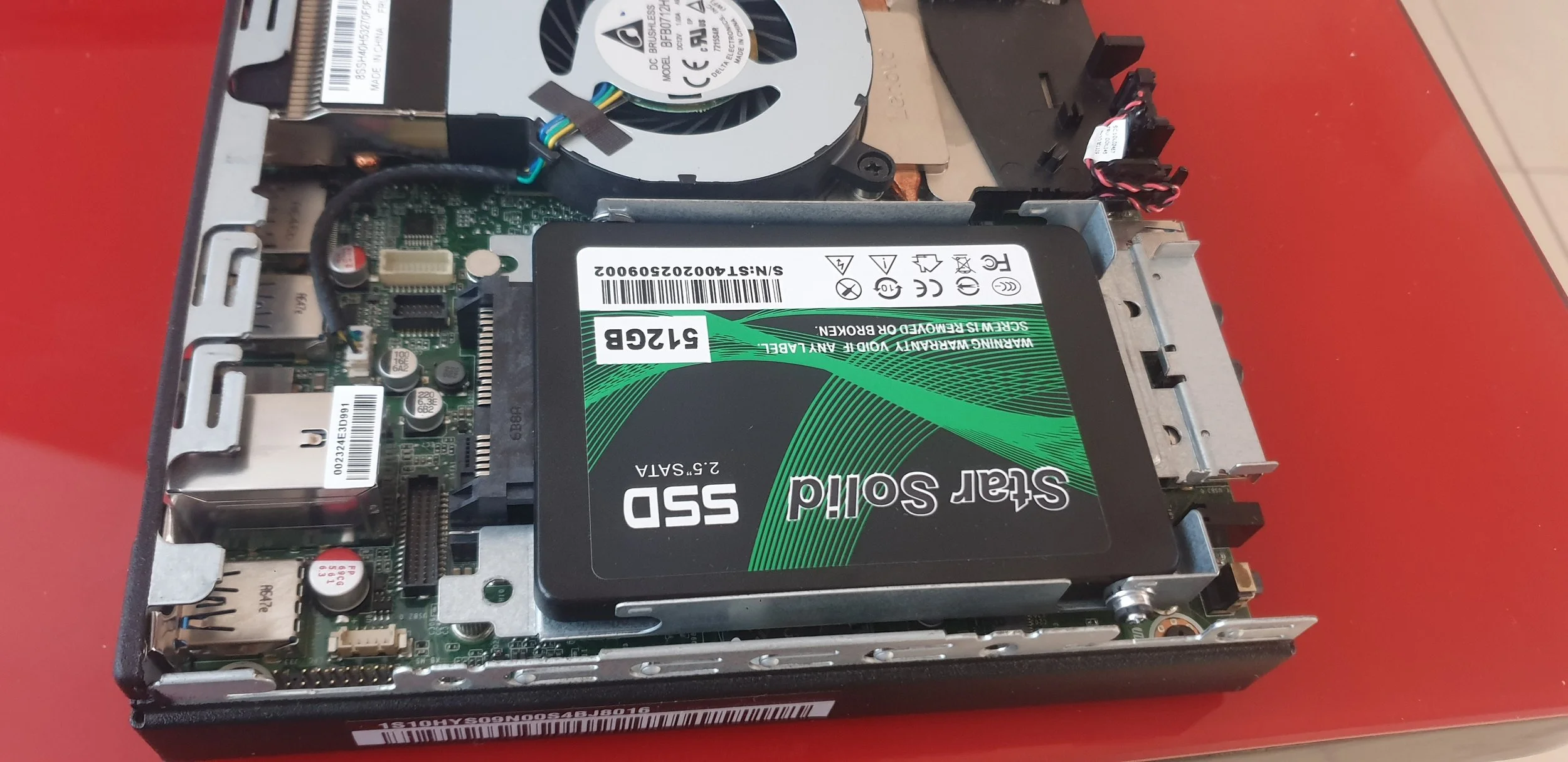 Since the SATA SSD was removed, the PC was left without storage. To replace it, a new M.2 drive was installed in the only available slot, providing faster and more energy-efficient storage.
