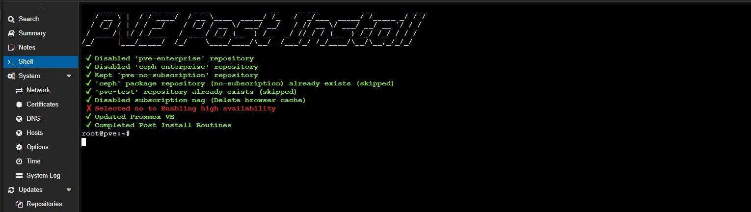 Then under PVE and Shell paste the command to install the packages with control+shift+v.