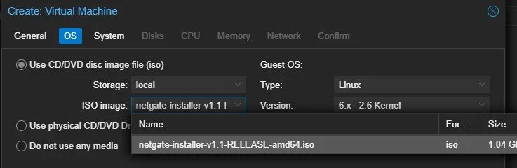 Then create a virtual machine for the PFSense.