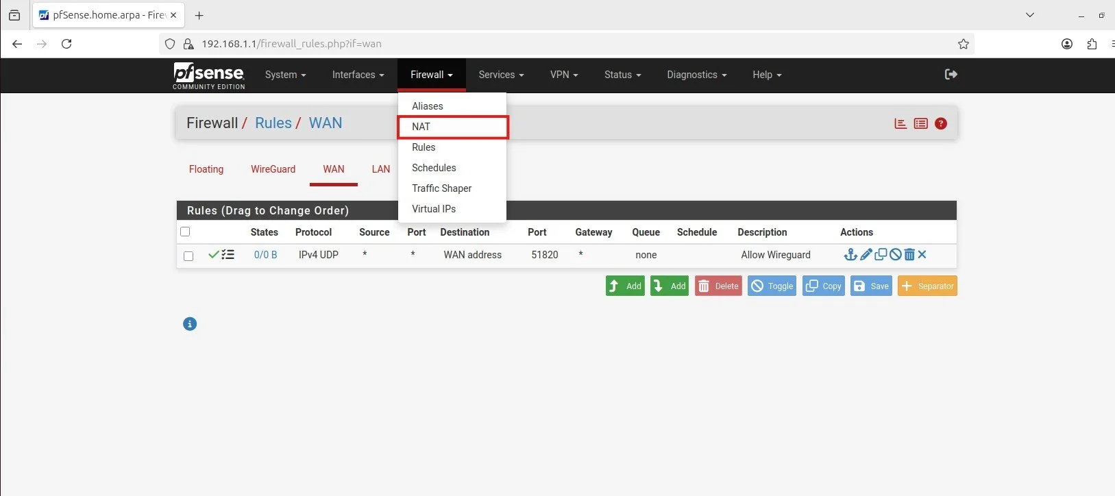 Go to the Firewall setting and click on NAT.