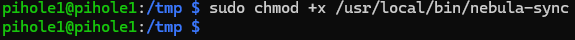 sudo chmod +x /usr/local/bin/nebula-sync